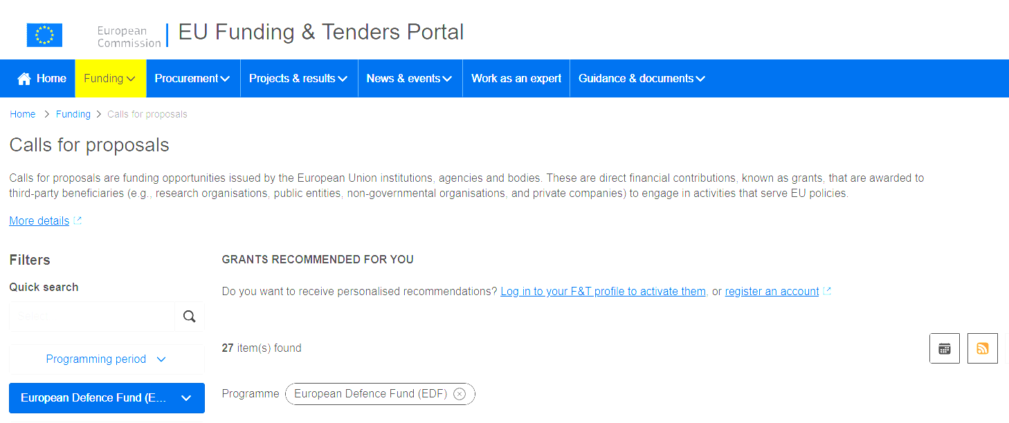 On February 11th,  the majority of 36 planned calls for EDF 2026 Program has been published at the EU Funding and Tender Portal